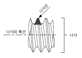 - 수나사의 산봉우리에 접하는 가상적인 원통의 지름을 바깥지름이라고 합니다.