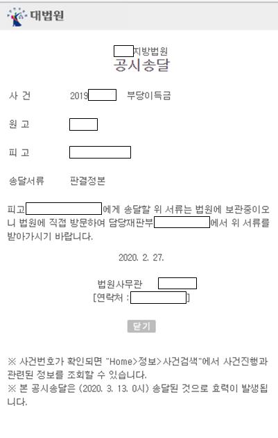 법원 공시송달 게시 보기