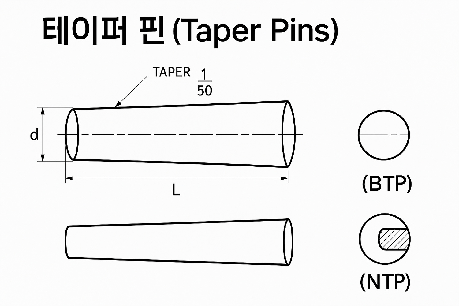 너트테이퍼핀 (NTP=암나사),볼트테이퍼핀 (BTP=수나사)로 구분