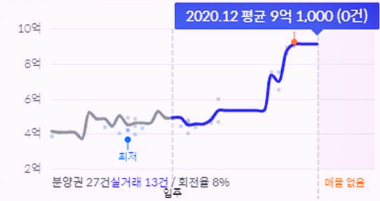 제가 살고있는 세종시 전세집도 처음 계약 시(2019년 7월 기준)에는 4억 중반의 가격이었습니다만, 요즘(2020년 11월 기준)은 9억 초반으로 실거래되고 있습니다.