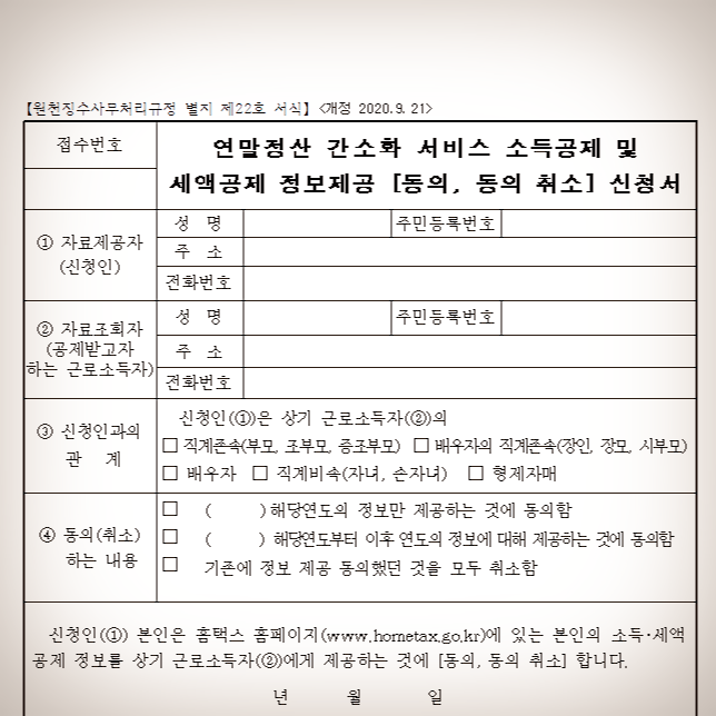 부양가족 세액공제 정보제공 동의 신청서 양식