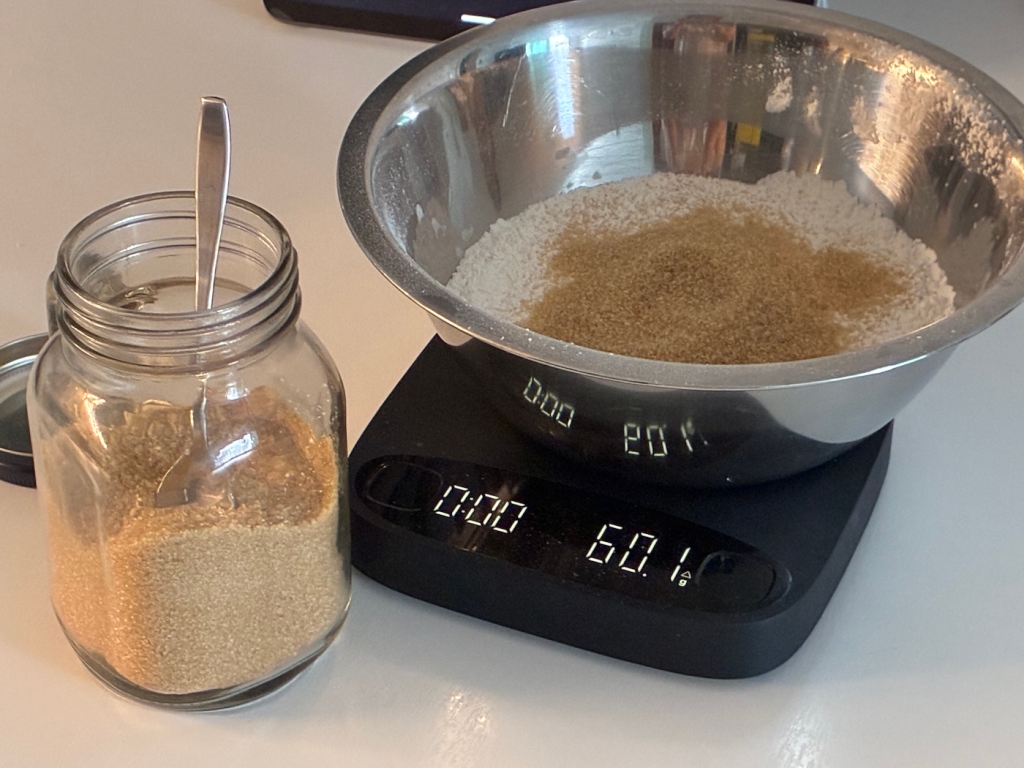 저는 그냥 가루류 재료와 액체류 재료 따로 나눠서 다루를 편입니다. 단, 이스트는 소금과 맞닿으면 안좋다고 들어서 이스트만 따로 물에 불어서 넣어주거나 반죽에 직접 뿌려주는 편입니다. 가루류 재료들 모두 볼에 넣어서 준비합니다. 밀가루는 중력분을 사용하면 속이 부드럽고 촉촉합니다.