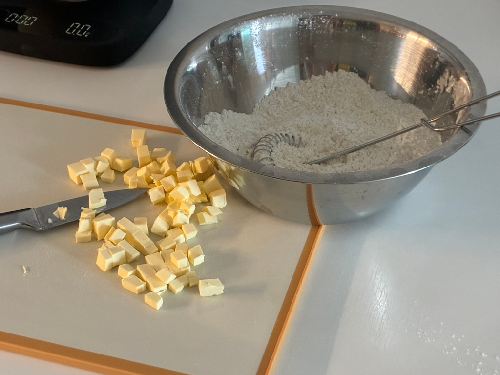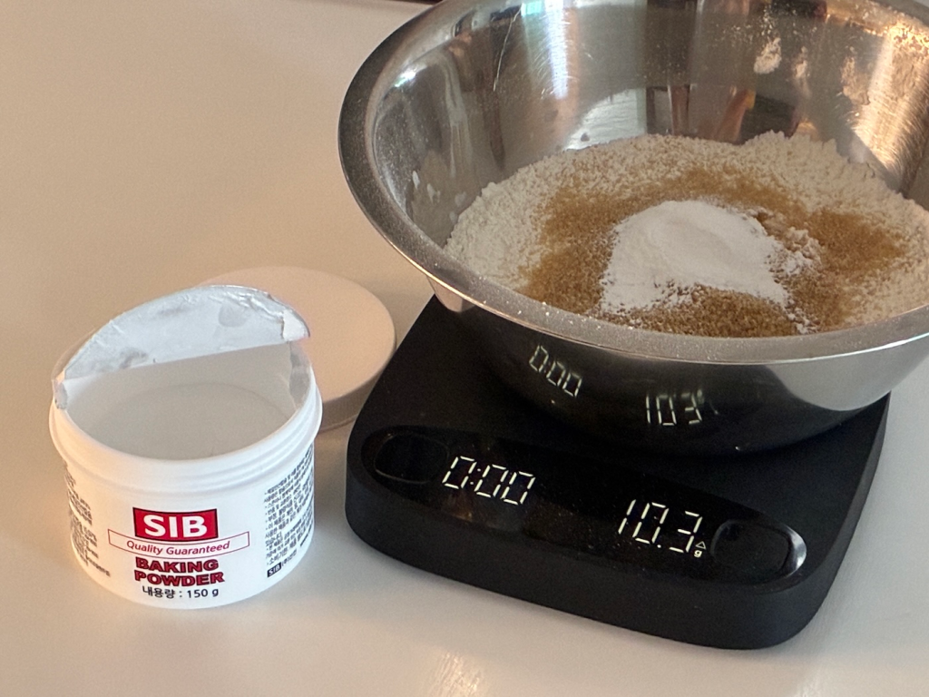 하다앳홈님 스콘 만들기 댓글에서 스콘에서 쓴맛이 난다면 베이킹파우더 문제일지도 모른다고 하셔서 추천해주신 선인 베이킹 파우도 똑같이 구입해서 사용하고 있습니다. 모를 땐 그냥 무조건 따라 하는 스타일입니다. 또 버터는 꼭 ! 무조건 ! 차가운 상태에서 네모 모양으로 잘게 잘라서 준비하고 가루에 넣고 작게 부셔가며 섞읍시다.