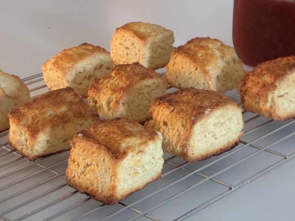 하다앳홈님 레시피로 만든 영국식 스콘 완성입니다. 많이 쓰러지지 않고 스콘이 부풀어 그대로 올라왔습니다. 버를 차갑게 유지해서 빠르게 반죽하는게 포인트! 입니다. 다 만든 스콘은 꼭 하다님 추천 조합인 클로티드크림 + 딸기쨈과 같이 드셔보세요. 진짜 천국의 맛입니다.
