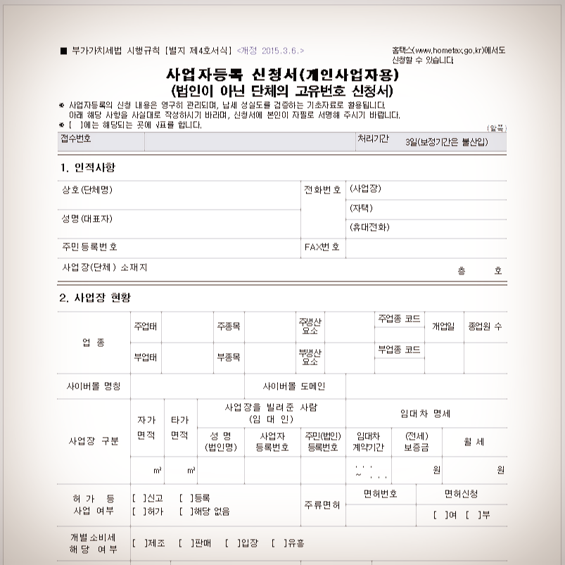사업자등록 신청서 양식/서식