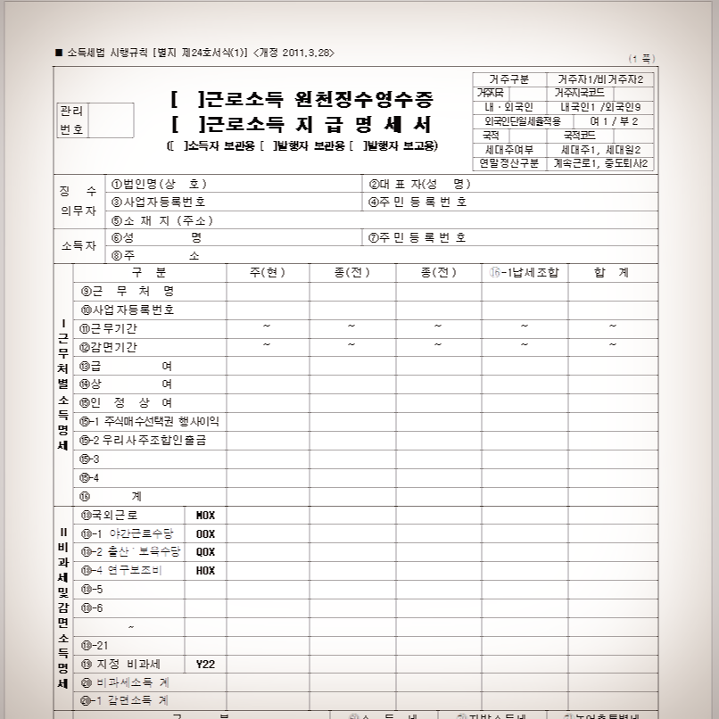 근로소득 지급명세서(원천징수영수증) 서식 다운로드