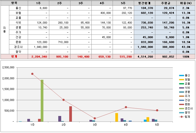 2분기 가계부를 작성하면서 느낀 점은, 예상하지 못한 다양한 이벤트들로 인해 지출이 늘어날 수밖에 없다는 것이다. 결혼식, 생일, 각종 모임 등 예상치 못한 지출 항목이 계속해서 생기다 보니, 자연스럽게 한 달 평균 지출액이 높아지는 경향을 체감하게 된다.
