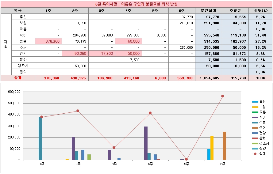 2인 가구 가계부, 2분기 (4월, 5월, 6월) 지출 및 점검