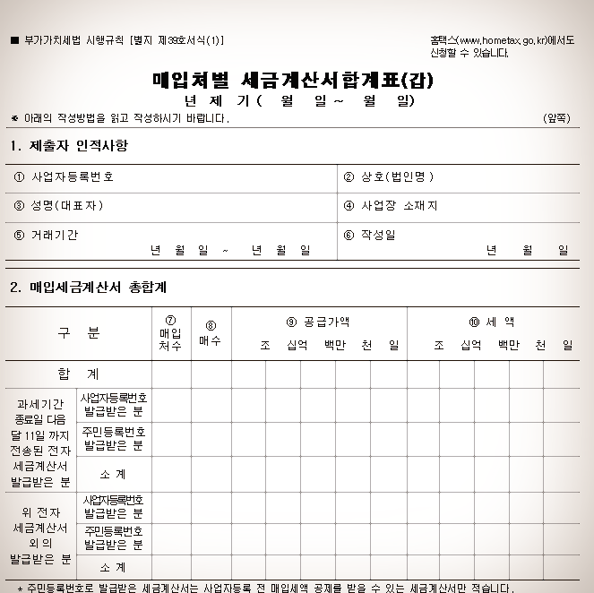 매입처별 세금계산서 합계표 서식