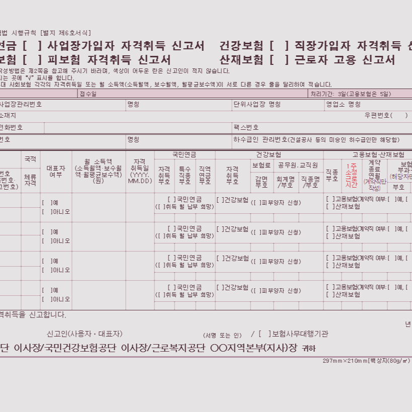 직장가입자 자격 취득 신고서 작성시 유의점