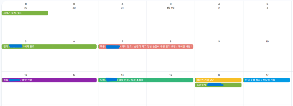 일단 준식축 7년차 25평 아파트 반셀프 인테리어를 위한 공정 순서는 이렇게 잡았다. 시공해야 할 부분은 시스템에어컨 설치, 목공, 전기 조명, 도배, 탄성코트, 줄눈 등 정도만 할 예정이다. 마루바닥과 화장실도 다시 깨끗하게 하고 싶은 마음이 있지만 비용이 1000만원 이상 추가로 들어가는 공사라서 도저히 엄두가 나지 않는다. 할 때 한번에 하면 좋겠지만 예상이 너뭐 벗어나는 관계로 이정도만 진행하기로 했다.