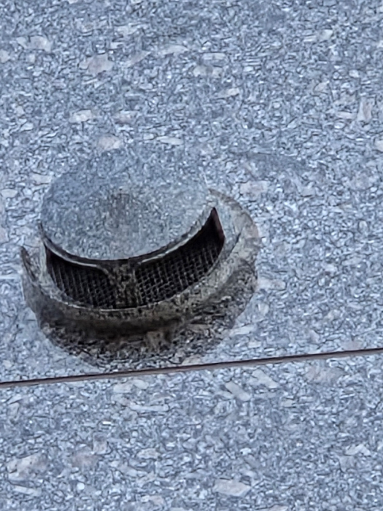 배관 덕트의 어느 부분이 막혔다. 배관 덕트에 새집, 벌집, 풀, 벌레 등의 이물질이 끼었다. (단독배기)